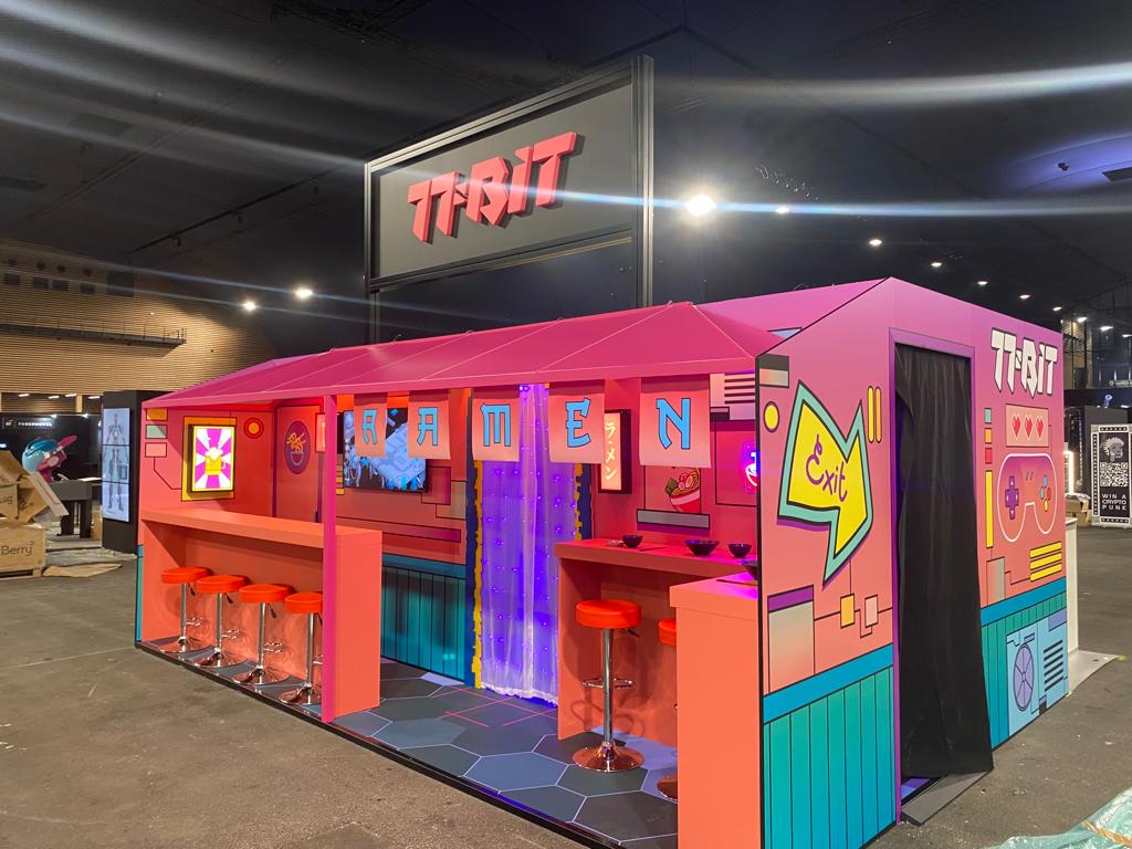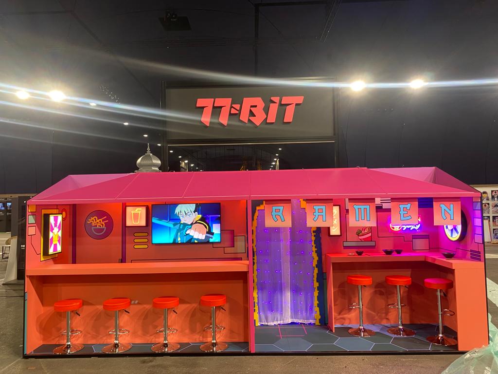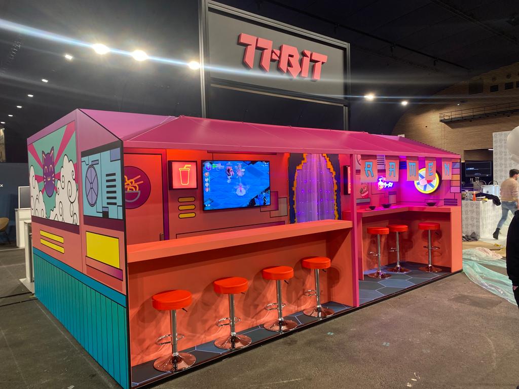Le Salon NFT Paris au Grand Palais Éphémère impose une exigence de visibilité radicale dans un environnement saturé de flux numériques. Pour le projet 77BIT, l'enjeu confié par le studio SUPERBIEN était de matérialiser un univers virtuel en une structure physique tangible et haut de gamme.